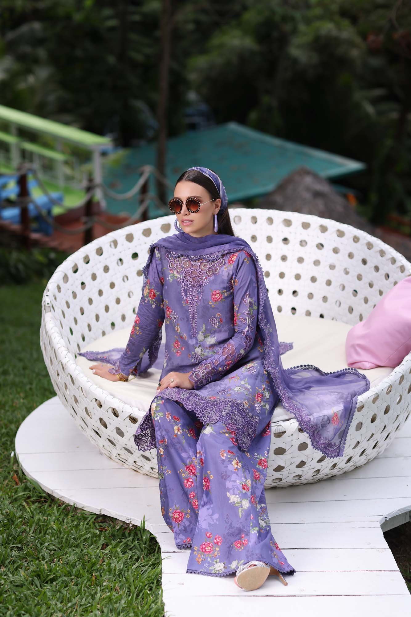 Digital printed panni embroidered lawn front