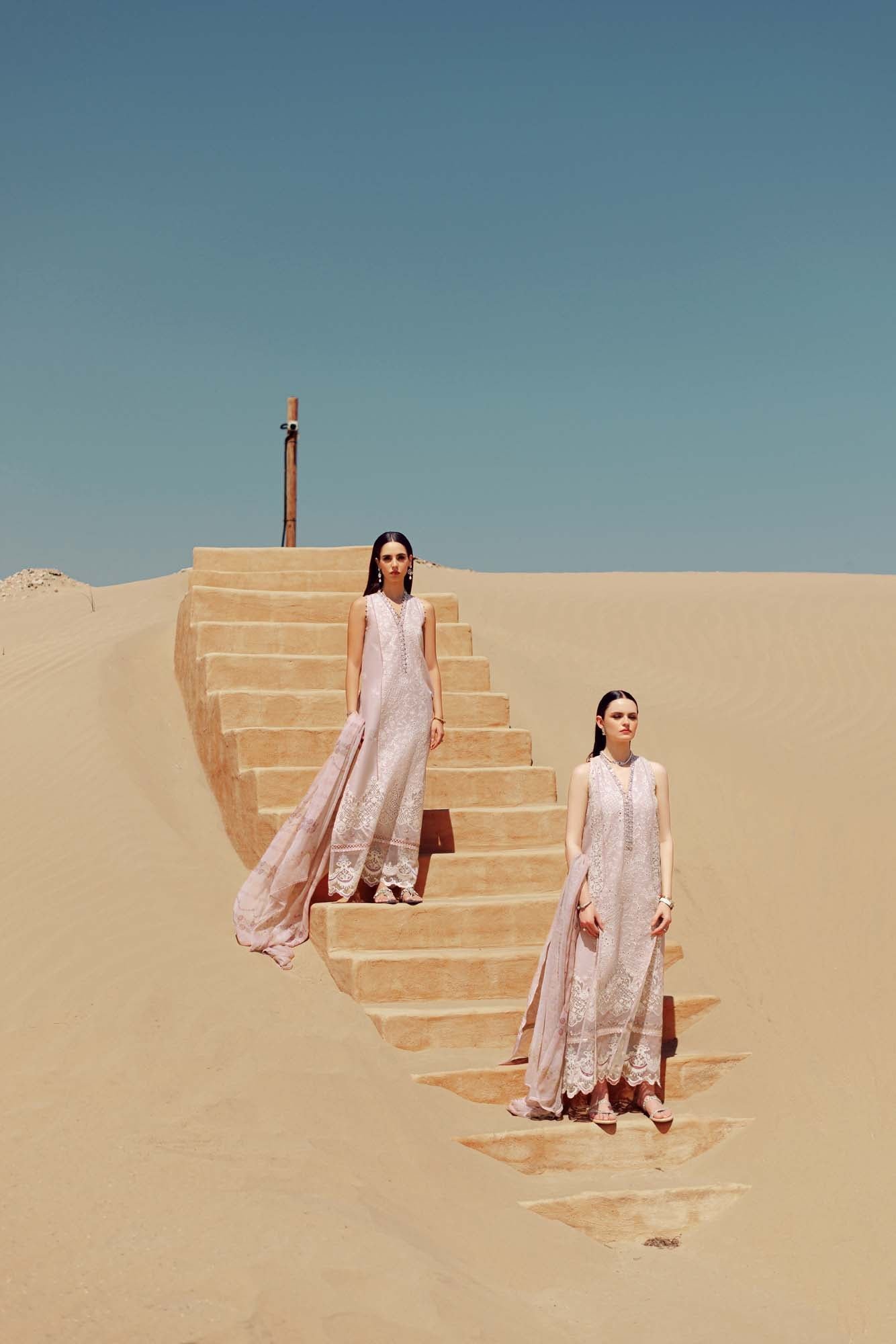 Schiffli embroidered lawn front center panel & embroidered side panels